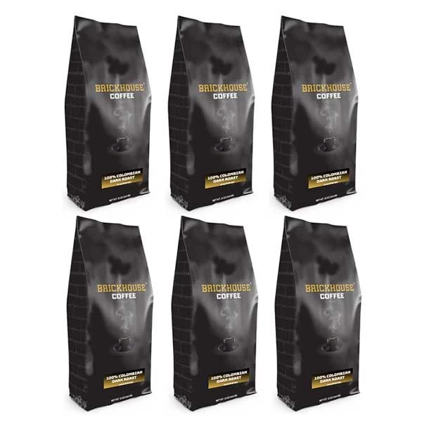 Brickhouse Ground Coffee, BRICKHOUSE Blend: 100% Colombian Dark Roast, 6/12 oz bags