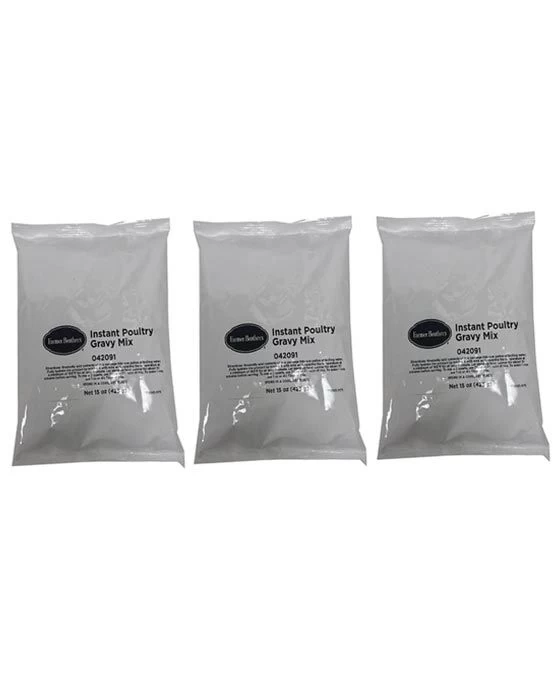 This sale is for 3 – 15 oz bags of Farmer Brothers Instant Poultry Gravy Mix