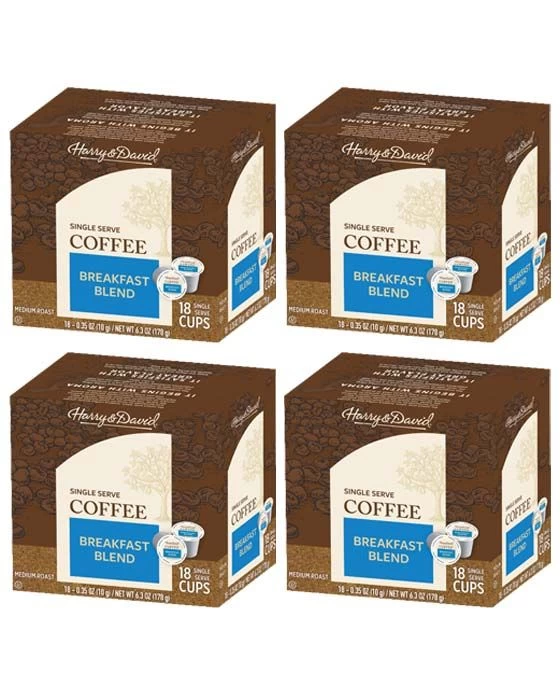 Harry & David Breakfast Blend Coffee Pods for Single Serve Coffee, 4/18 count (Total 72 cups)