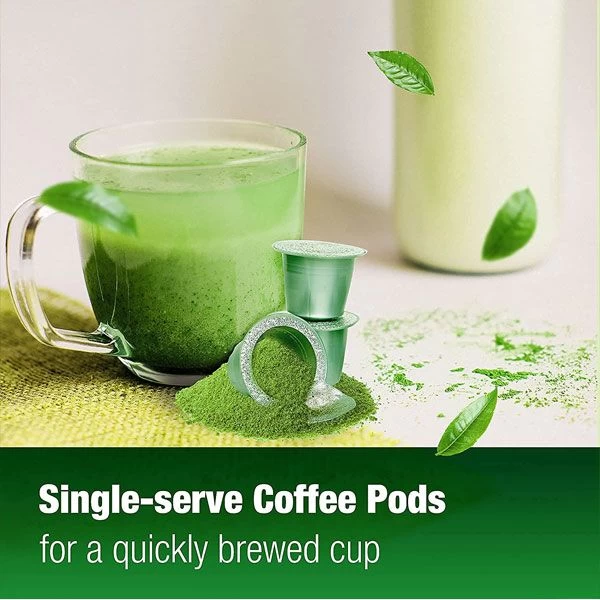 Single Serve Pods: The pods are designed for convenient single-serve preparation. Simply insert a pod into a compatible beverage machine, follow the instructions, and enjoy your flavorful green tea latte in minutes.
