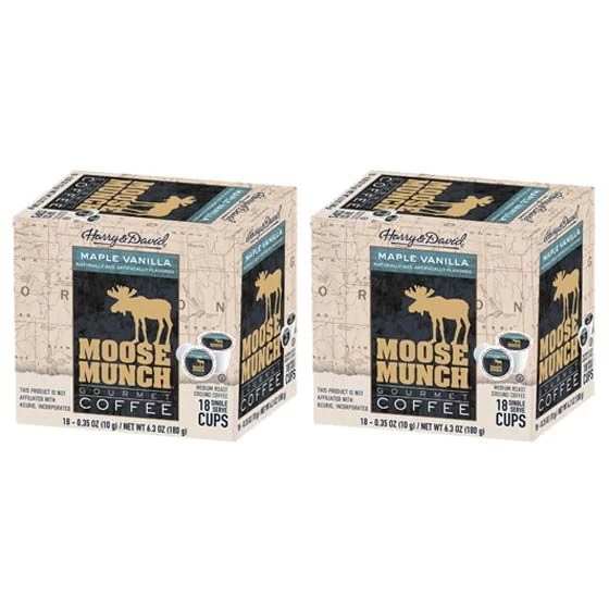 Moose Munch Single Serve Coffee by Harry & David, Maple Vanilla, 36 count 2 Boxes(18 count each)